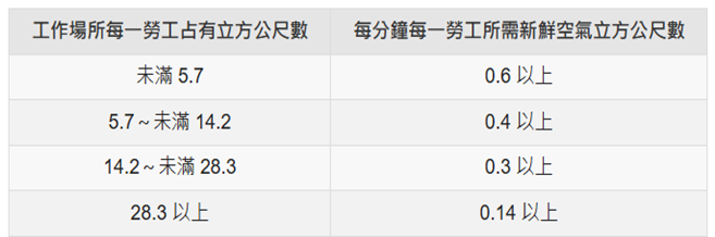某辦公室內人員每小時產生二氧化碳為 5立方公尺/hr。假設戶外空氣中的二氧化碳濃度為 300 ppm,而室內允許的最高二氧化碳濃度為 1100 ppm,為了保持室內空氣品質,請計算該空間每小時所需的最小換氣量(立方公尺/hr)。